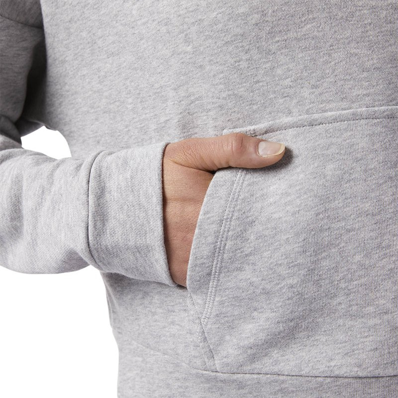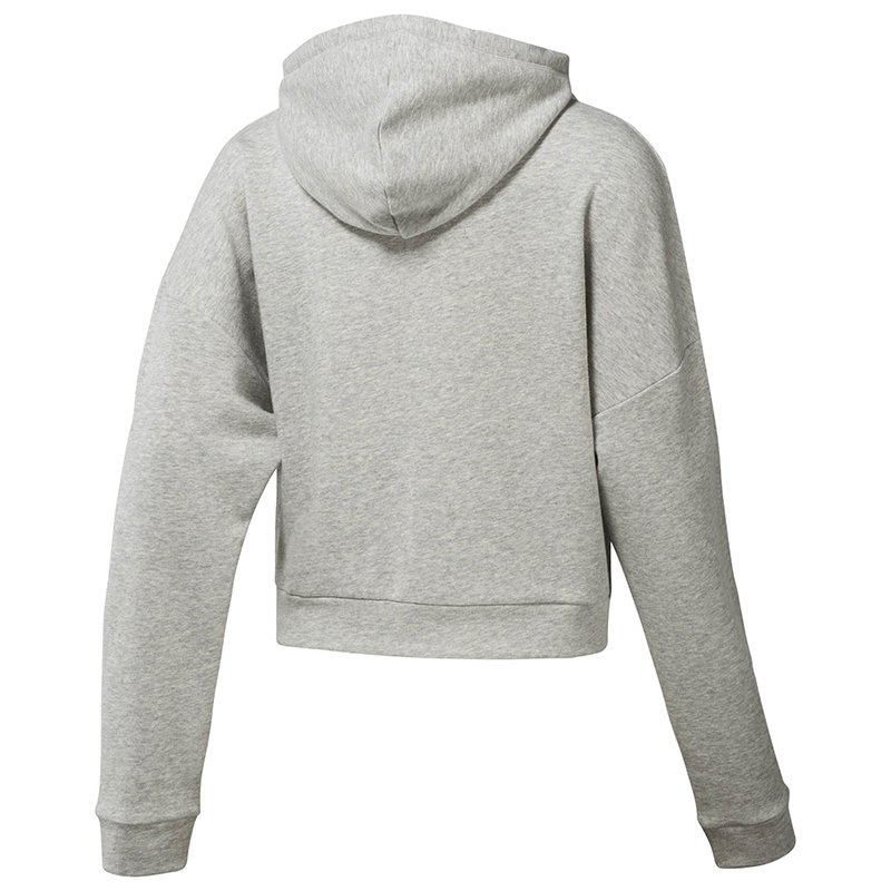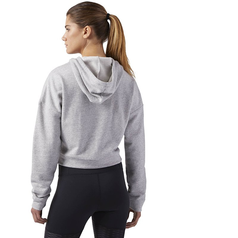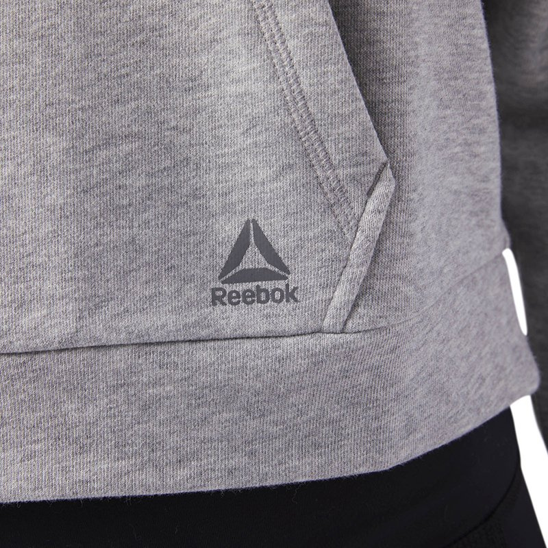 Damska bluza sportowa o regularnym kroju, który nie krępuje i nie ogranicza ruchów podczas aktywności. Kaptur ściągany sznurkiem i wysoki kołnierz chronią przed zimnem i wiatrem. Bluza została wykonana z miłego w dotyku materiału z dużą zawartością bawełny, dzięki czemu nie powoduje otarć, ani podrażnień. Z przodu umieszczono praktyczną kieszeń otwartą z dwóch stron. Ściągacze zapewniają dobre dopasowanie.